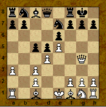 [Интересно, что позиция на диаграмме встретилась в прошлом году в практике армянского гроссмейстера белым цветом! В партии А.Григорян - Апицелла (Франция 2011) последовало: 15... h6 16. Nh3 Bd7 17. Qe2 b5 18. g4 a5 19. h5 gh 20. g5 hg 21. N:g5 g6 22. Kd2 b4 23. Rag1 bc 24. K:c3 Rf5 25. Nf3 Rb8 26. Nh4ќ]
