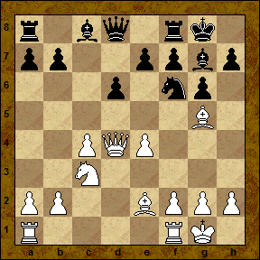 [На 12. Qe3 возможно 12... Qb6 . Теперь же черный конь с темпом отправляется на свое законное место в подобных позициях - поле с5.]