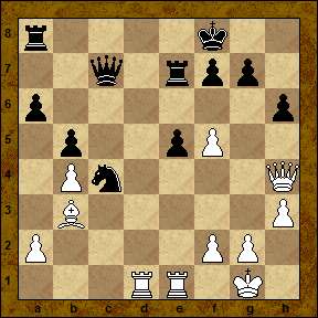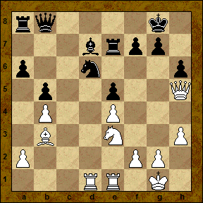 21... Qa5?! Вновь не лучшее решение. Сздается впечатление, что испытав "шок" на 19-м ходу, черные потеряли ориентацию и один за другим пропускают комбинационные "тычки" соперника.